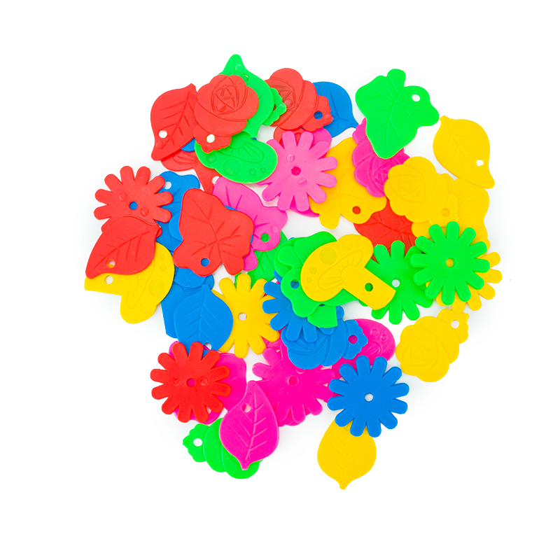 Chi tiết: Bằng nhựa màu, gồm 50 chi tiết hình các loại hoa lá và nấm.